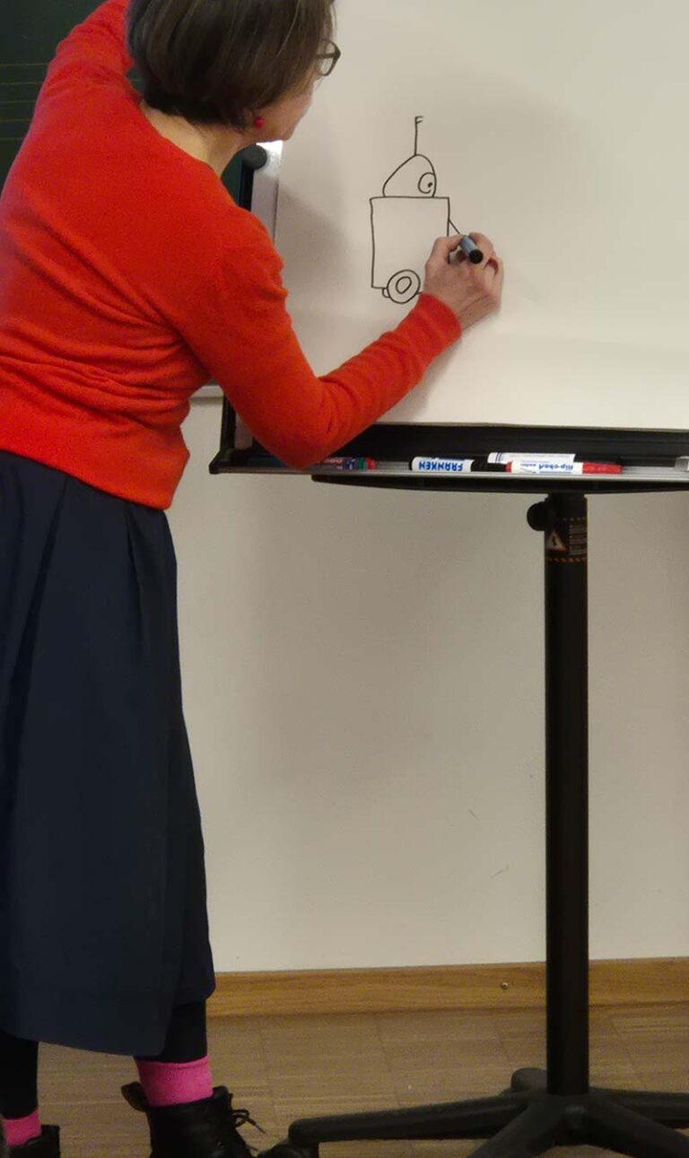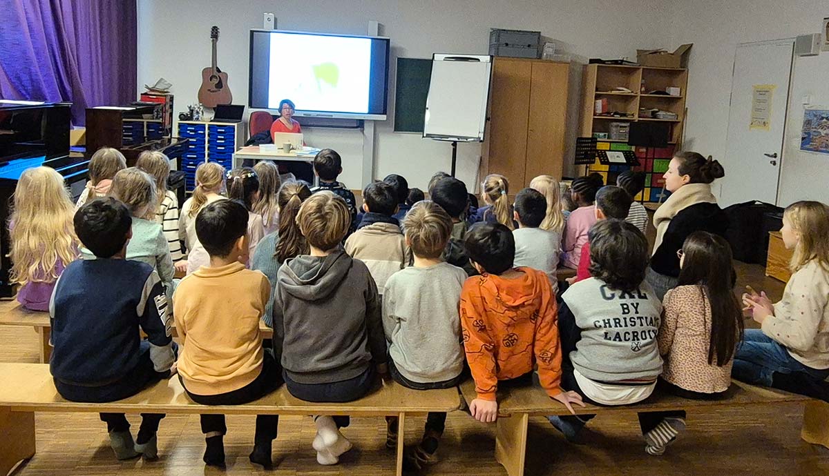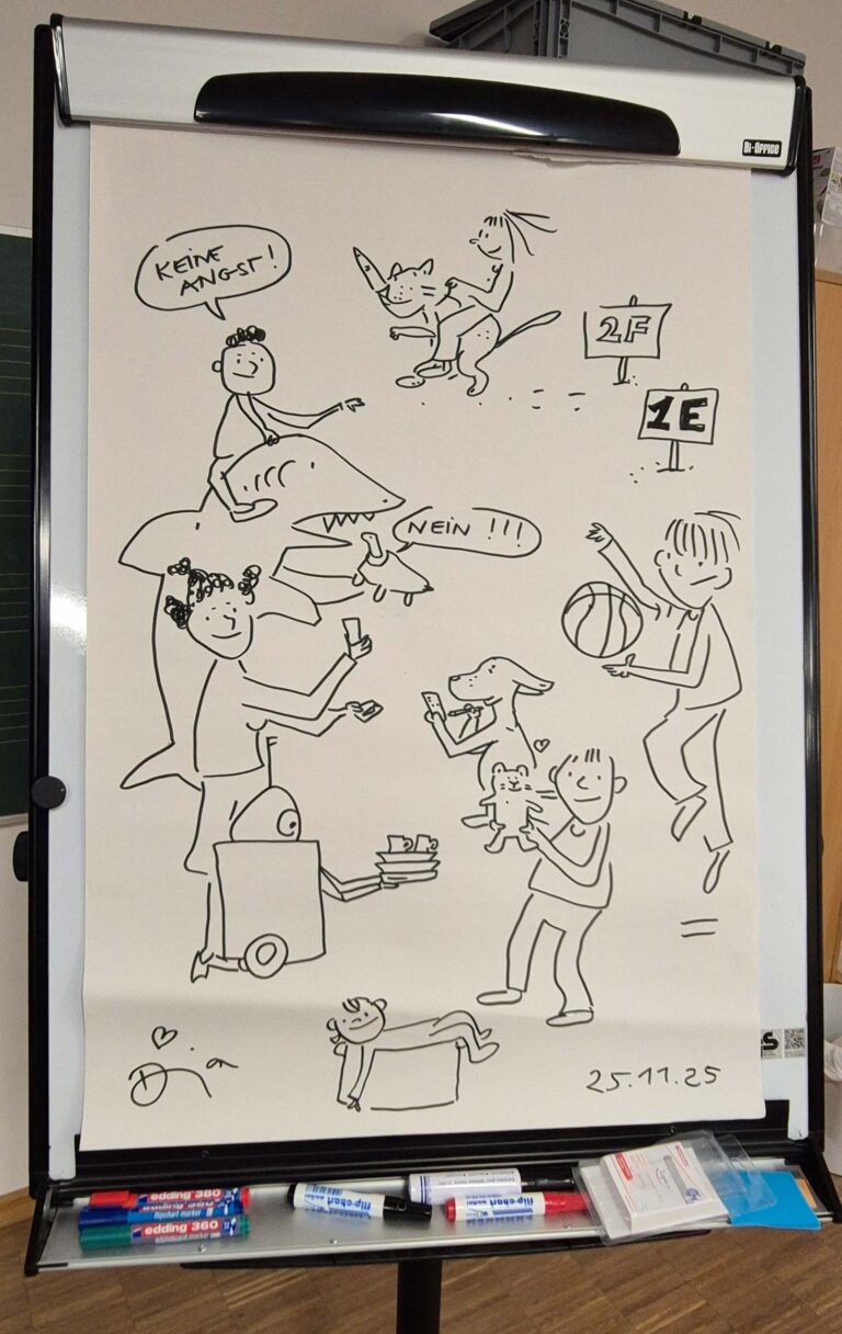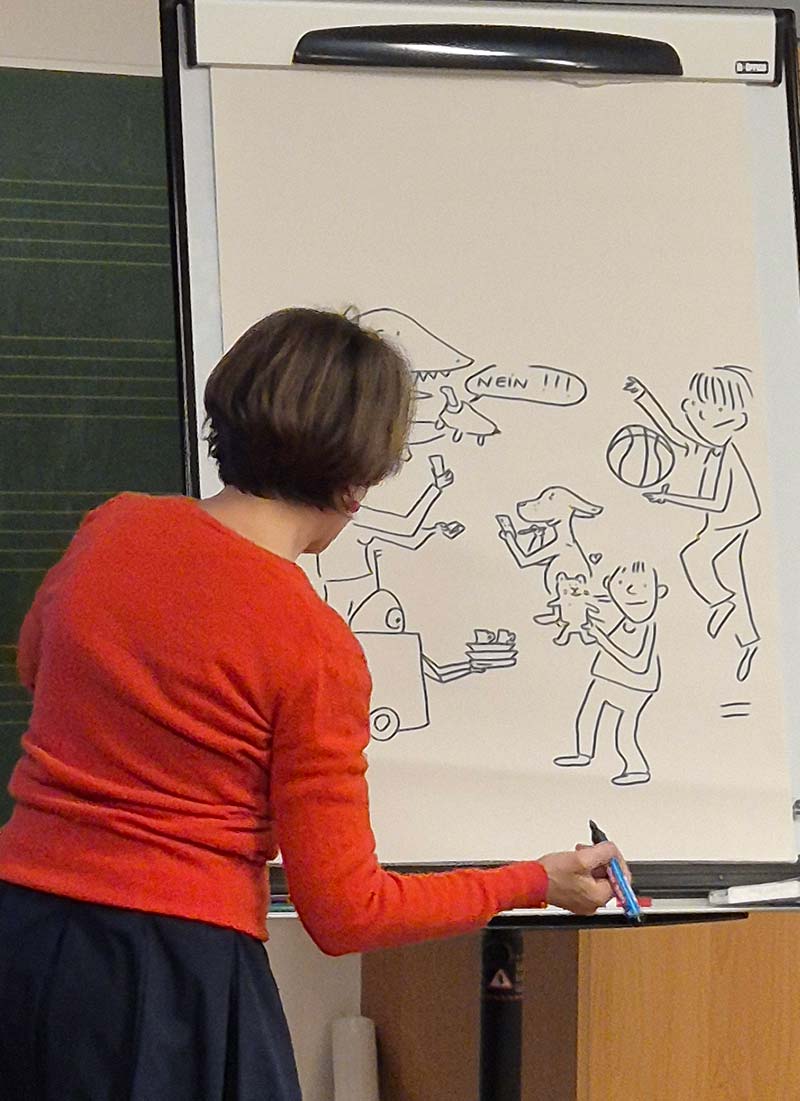 Dunja Schnabel liest und zeichnet für unsere Zweitklässler.